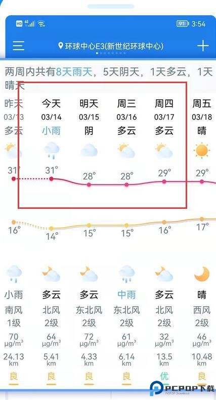 3、超长时间,可以选择查看超长的时间段,半个月的天气预报都是能查看。