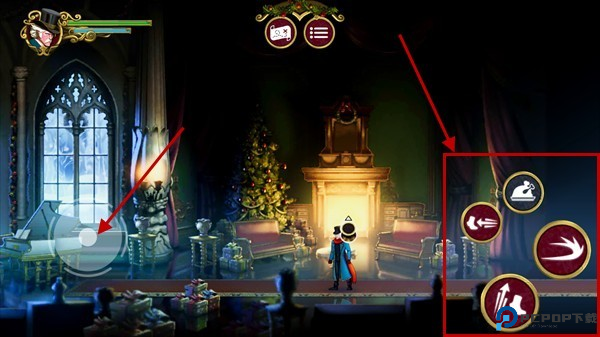 3、进入到地图中后,我们可以使用屏幕左侧的摇杆控制角色的一哦发你,右侧可以进行跳跃、闪避和攻击。