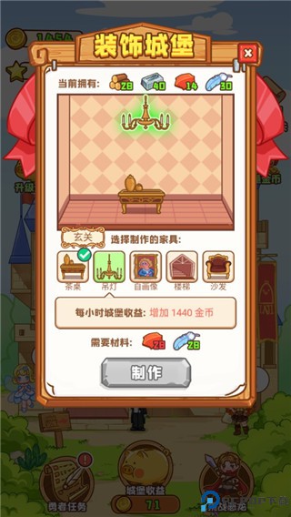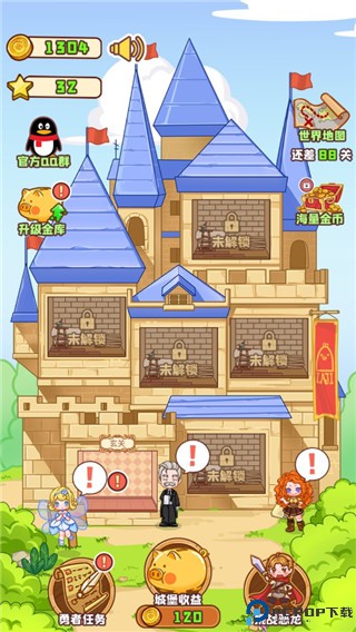 2、随着关卡提升,玩家可以升级称号,解锁更华丽的外观,同时获得更多城堡建材,升级城堡产出更多金币作为路费。