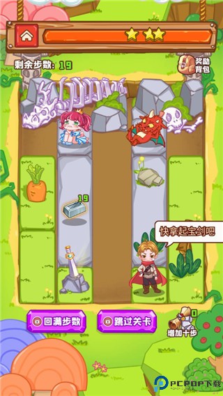 1、在有限的步数内,拖动勇士地块,拿起宝剑,勇敢刺向恶龙。