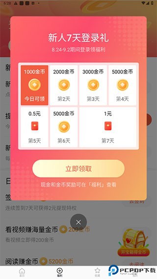 4、每天看剧达到一定时间可以获得金币,累积到一定数额就能体现,新人朋友还有七天签到福利
