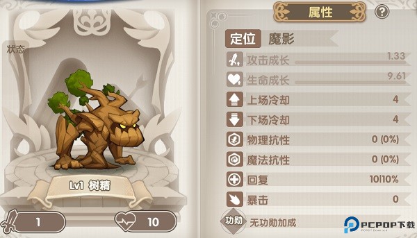 3、树精作为防御型单位,具备高生命成长,每回合会对血量最低的目标造成一次基于最大生命值的固定伤害。初期威胁不高,但后期成长成型后,需关注输出位的血线状态,避免主力被压制。