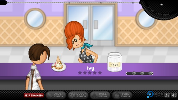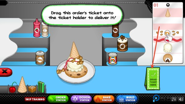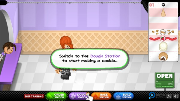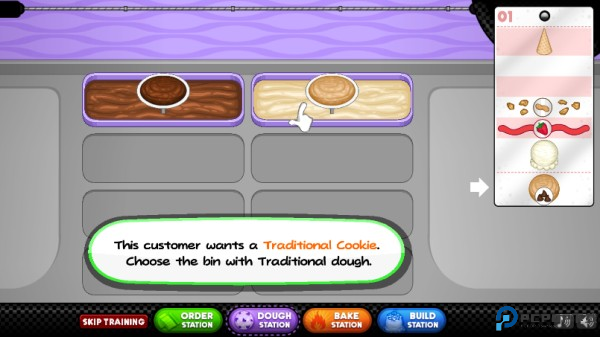 3、接着就正式开始饼干制作啦,点击“dough station”这位顾客想要传统饼干。选择有传统面团的垃圾桶。