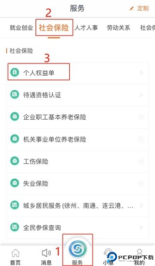 一、下载并实名注册“江苏智慧人社APP”(已下载注册忽略这一步)二、登陆后,点击“服务”,选择“社会保险”,点击“个人权益单”