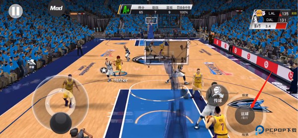 3、滑动运球摇杆,调整运球方向,灵活掌控控球节奏。