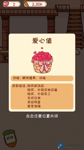 3、购买装饰品能增加爱心值,爱心值是判断公寓等级的重要因素,爱心值达到一定的值就能解锁新的房间哦。