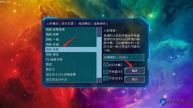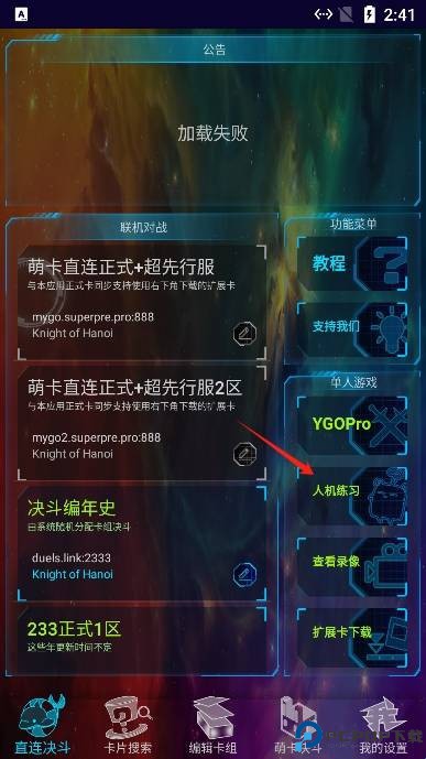 4、卡组新建完毕后我们点击主页的人机练习试试效果