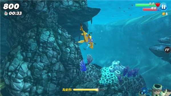 玩家朋友们不要想着吃大鱼得高分,小鱼分数低就不去捕捉。鲨鱼的饥饿程度是和跑动的距离有关的,如果不及时的进食,是很容易饿死的。所以不要挑食,大小都好。