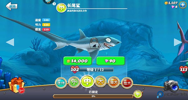 在游戏中玩家可以使用金币对鲨鱼的速度、血量、撕咬的范围进行升级,升级后可以使得鲨鱼的捕杀能力有了很大的提高。玩家在进行游戏的时候能升级就尽量的升级吧。
