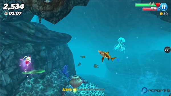 持续的使用加速会造成鲨鱼饥饿度增加,玩家要注意好两者之间的关系,不要轻易的加速,浪费鲨鱼体力。
