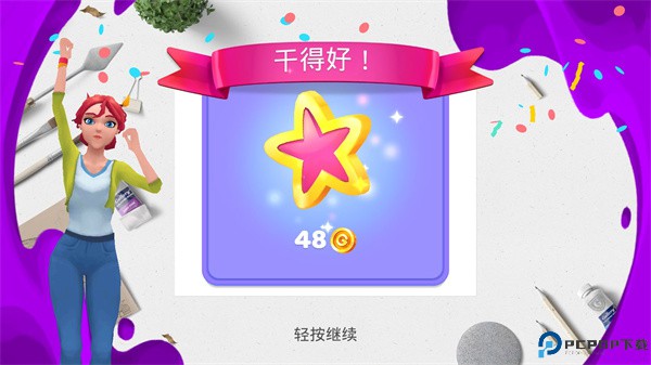 3、填完颜色后我们就可以获得奖励了,玩家可以利用奖励来装饰自己的房子。