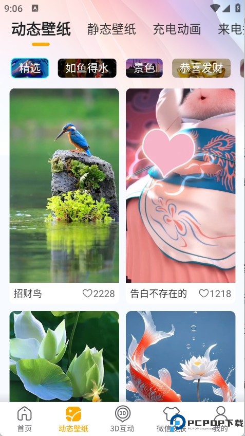 荷花锦鲤壁纸是一款拥有丰厚动态锦鲤壁纸资源的软件,软件有很多精美好看的壁纸,每个壁纸的类型都是非常多的,有3D荷花和4D锦鲤的特效效果,还可以自由调整壁纸元素位置、大小和效果,软件每天都会更新大量的壁纸资源,用户在线就可以免费下载,还有强大的定制功能,能根据自己的需求调整壁纸,让手机桌面变得更加有趣好玩,还可以提前查看预览效果哦。