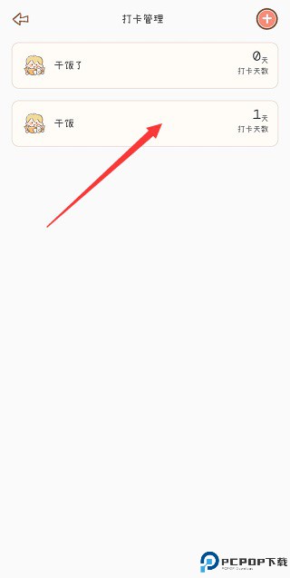 2、进入打卡管理,选中一个打卡目标。