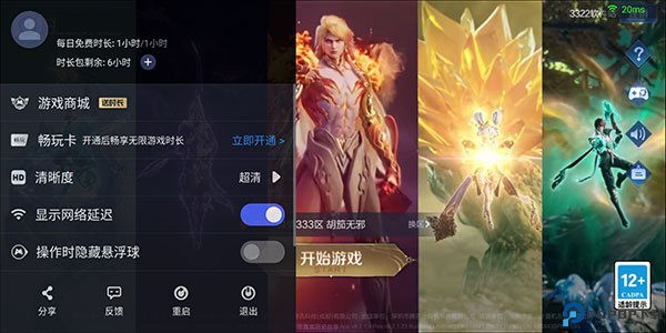 2、这里可以开通无限游戏时长,可以调云游戏的清晰度,还有关闭网络延迟等设置