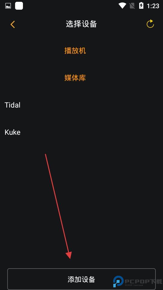 2、在选择设备页,按需选播放机、媒体库等,也可点添加设备拓展音乐来源。