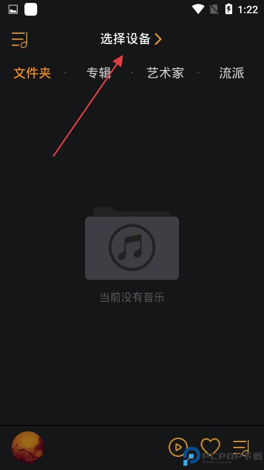 1、进入应用,若本地无音乐,可点击选择设备,从其他设备或平台获取音乐资源补充。