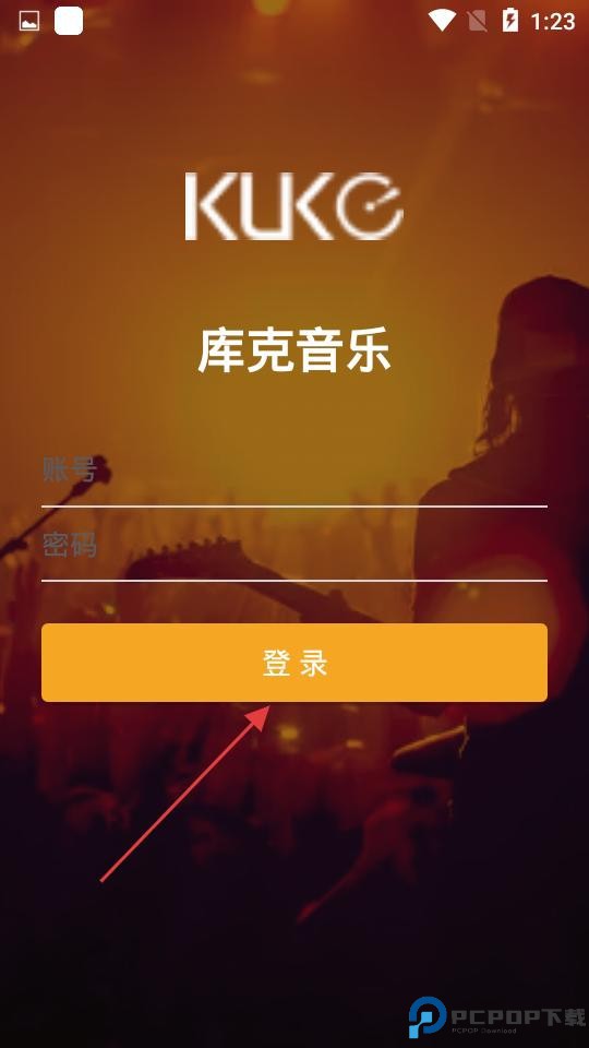 3、进入登录页填账号密码,点登录访问库克音乐平台,畅享更多曲目。