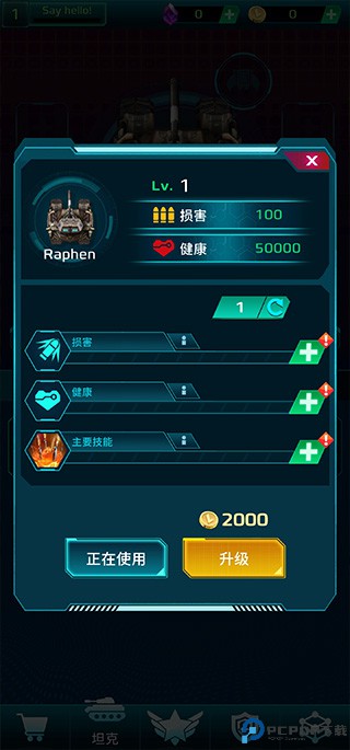 5、我们也可以在游戏开始之前,使用金币对坦克进行升级。