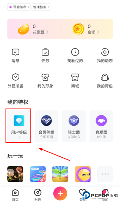 [我的] -切换为[用户] - [我的特权] - [用户等级]