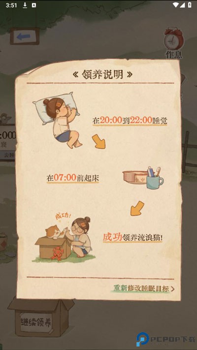 2、设置好作息时间,只要按照设置好的作息时间来执行就可以领养一只流浪猫