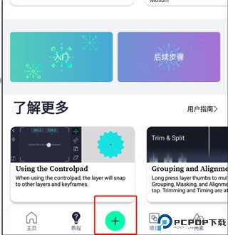 5、新建的项目是没有视频内容的,需要自己编辑,然后点击右下角的“绿色加号”,进行添加编辑;