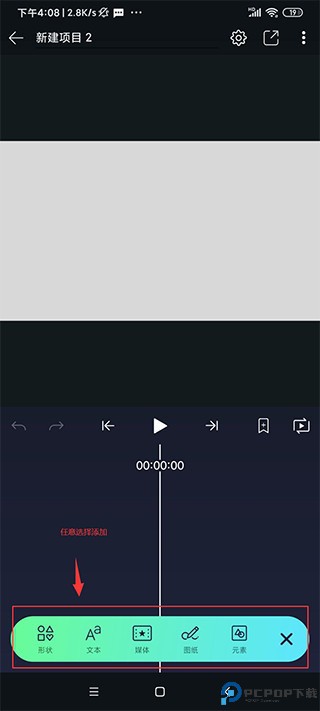 6、可以添加形状、文本、媒体(手机上的图片和音乐还有视频)、图纸、元素;