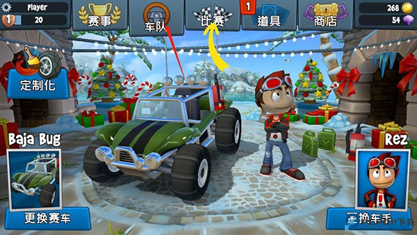 5、可以去参加每日挑战和锦标赛,胜利可以获得大量的砖石和金币奖励,可以用来购买性能更强的赛车