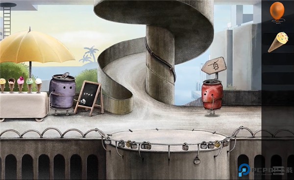 21、将冰淇淋以及气球给场景内的易拉罐,需要两次给。