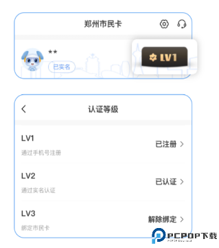 2、点击Lv1,完成实名认证、市民卡绑定。