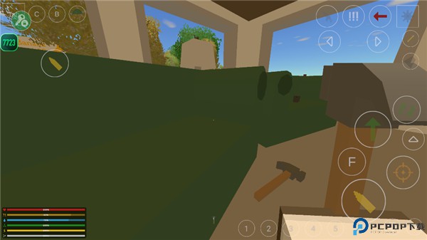 3、进入游戏后,我们可以探索周围建筑,寻找你想要的资源,碰到可以拾取的东西,它会显示出来,玩家点击f即可拾取;