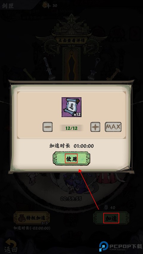 6、升级剑匣需要一定时间,玩家可以使用加速券加速升级。