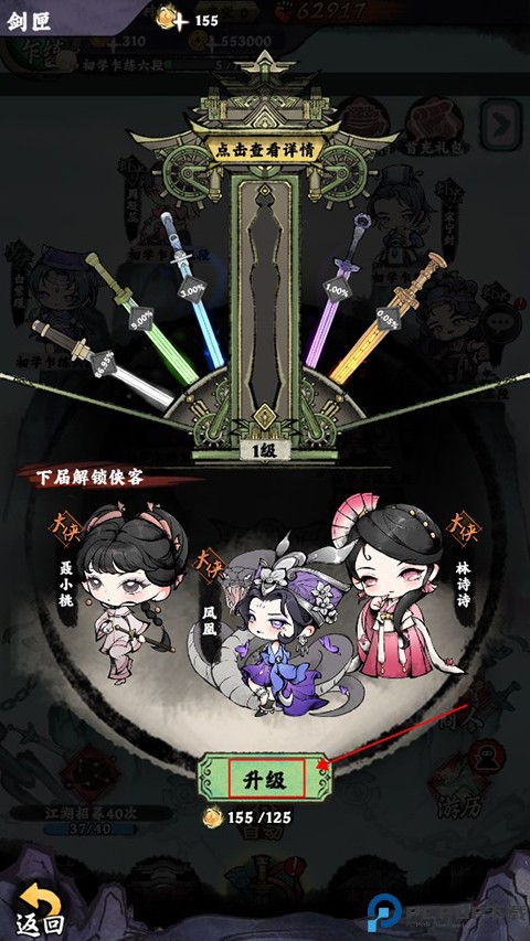 5、通过拒绝侠客可以获得声望,有了足够的声望后就可以提升剑匣等级,解锁更多侠客,提高高阶级侠客获取概率。