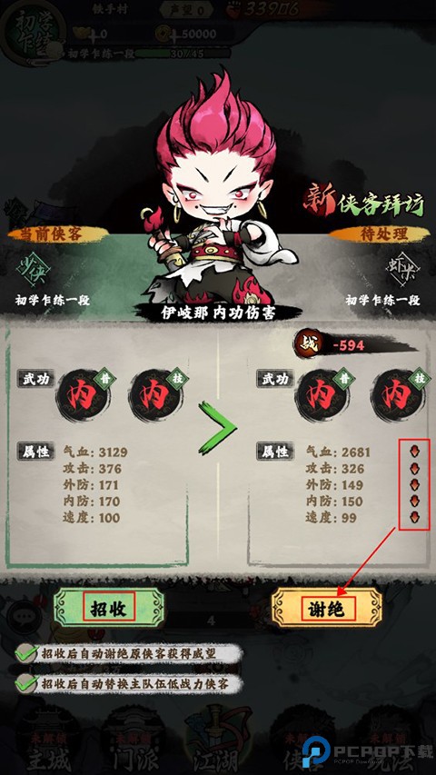 2、在招募到相同类型弟子时,玩家可以根据弟子属性高低来选择招收或者谢绝。