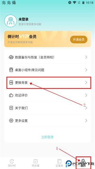 进入倒计时软件,点击“我的”页面,点击“更换背景”