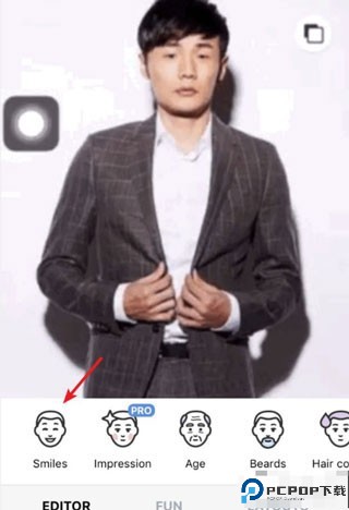 5、等待照片处理加载后,选择下方的效果分类,比如点击微笑。