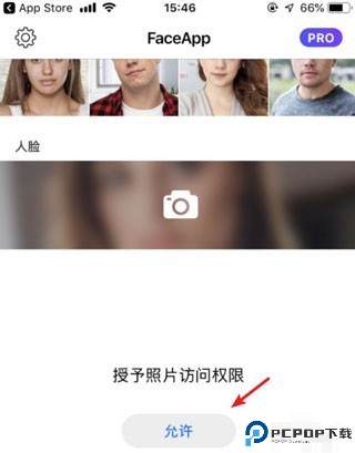 1、打开手机的FaceApp进入主界面,点击中间的允许选项。