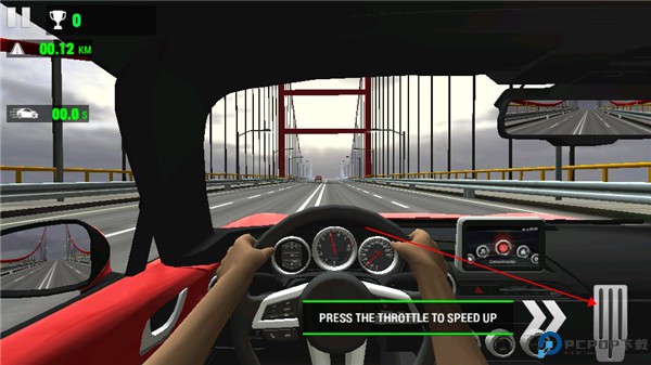 1、在本站下载安装并打开赛车限制游戏,进入游戏。右边按钮是油门,点击可以加速。