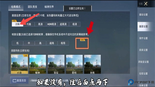 10、进入画面设置,选择“流畅”,然后点击“当前”即可。
