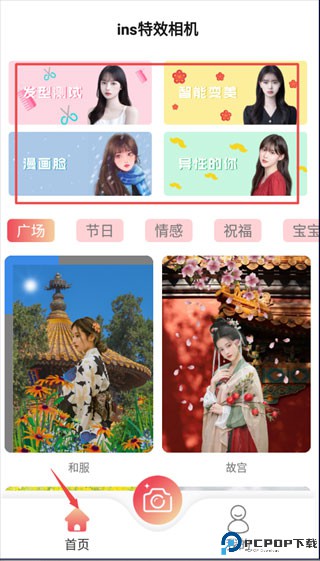 1、下载安装该应用,打开软件,在首页有“发型测试”,“智能变美”,“漫画脸”等功能。