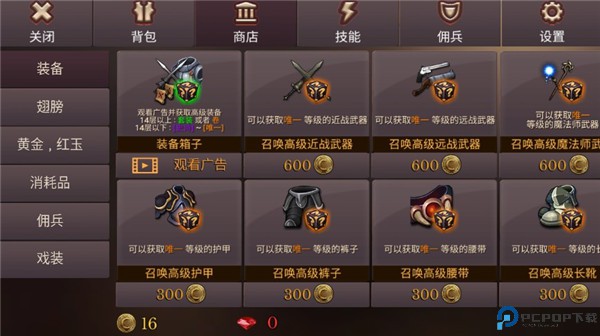 7、还可以点击商店,在这里可以用击败敌人获得的金币来购买道具和装备