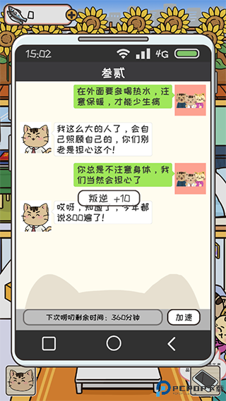 1、玩家扮演猫儿子的家长,通过寄物和聊天来关心他的日常生活。