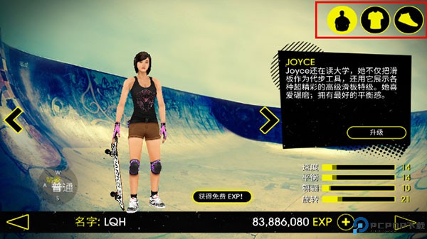 1、在滑板派对3游戏首页点击生涯,进入可以购买自己喜欢的角色和升级相关属性就可以了;