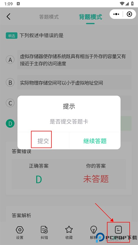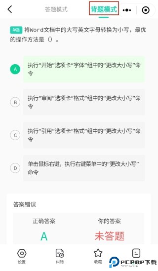 4、这里我们就进入了答题模式,点击“背题模式”,就切换为背题模式了,直接显示答案,下方的解析也十分的详细易懂。
