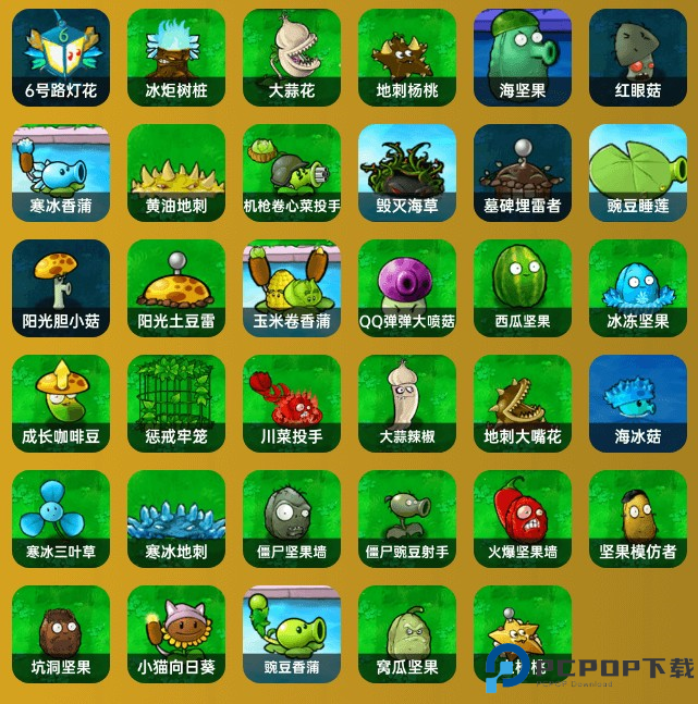 普通植物第一梯队:寒冰仙人掌、向日葵花盆、向日葵阳光菇、坚果倭瓜、倭瓜王、仙人掌三叶草。其中最强的当属寒冰仙人掌了,可以打三条路,减速加穿透,前期过度无敌。