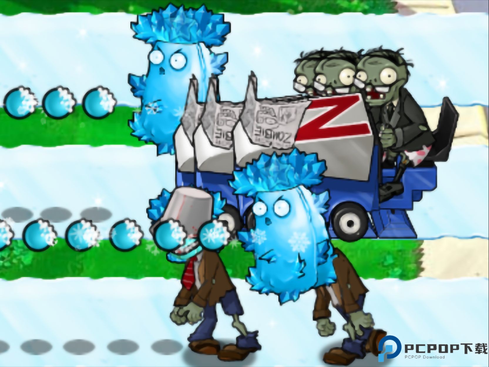 小型冰球:耐久值为1800(可被摧毁),能阻挡子弹穿透,速度中等,可以碾压植物并留下冰道。遇到能抵挡碾压的植物会立即被摧毁(相当于爆胎)。