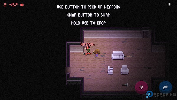 5、进入第二个房间,地上有武器可以捡来使用;