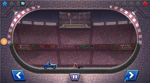 在游戏里面使用自己的赛车去和对手展开一系列的pk竞技。整个游戏的内容是很丰富的,所有的操作都是简单的。不断地去撞击对手的头部来获得最终的胜利,提供了多种赛车以及地图给你体验。