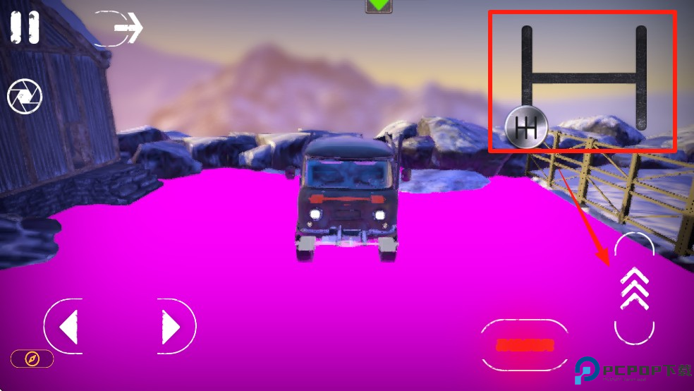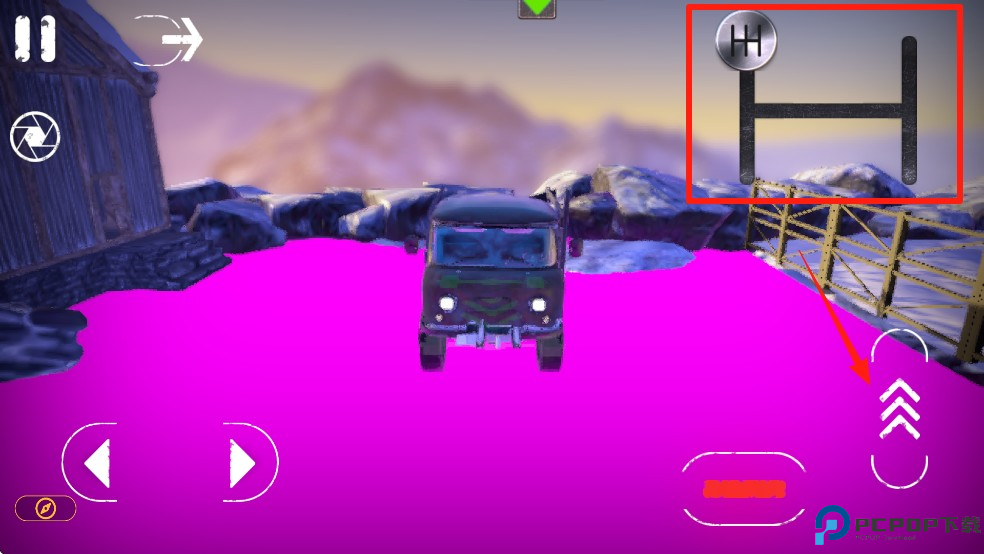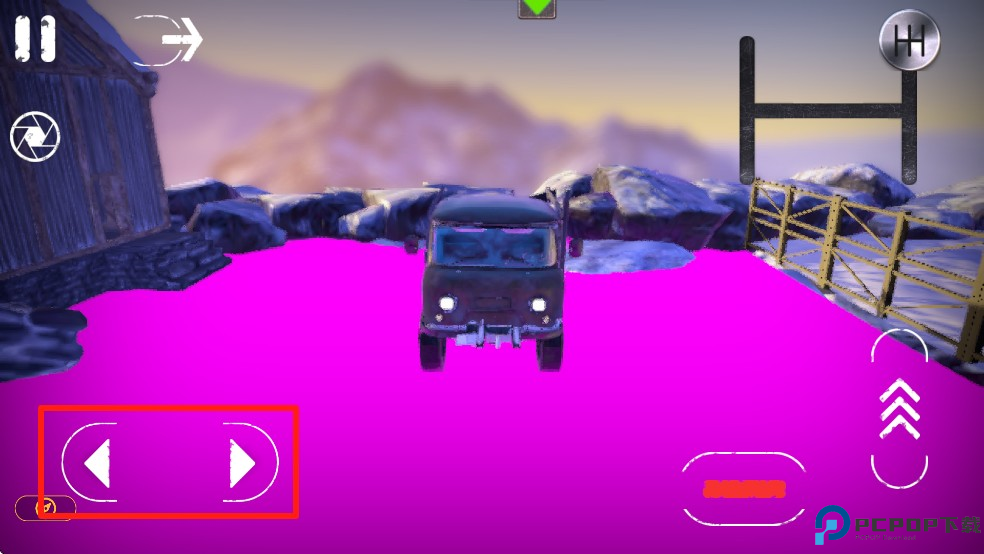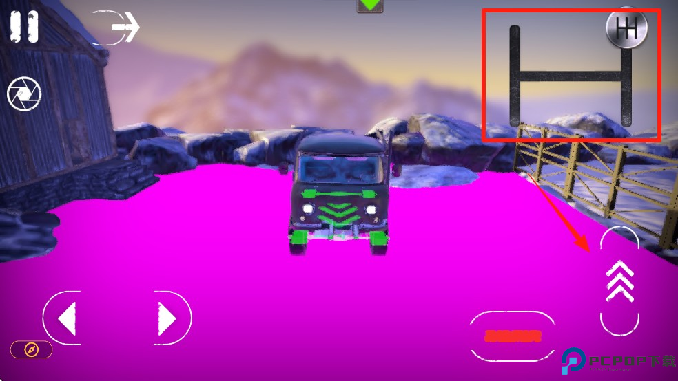 1、玩家进入游戏后,通过右上角按钮控制车辆前进或后退。