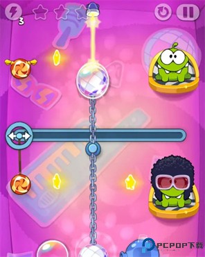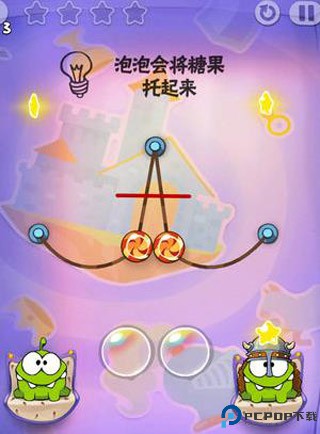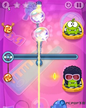 1、该关卡包含多个互动物品,如糖果、钢球和泡泡,需要合理利用。