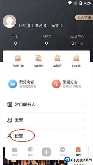 1、打开阡鹿旅游app点击我的
